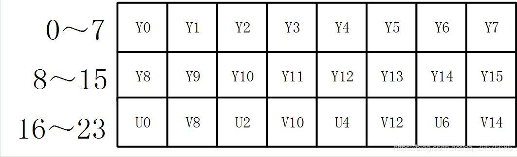 假如一个8*2像素的图像的该格式的存储分布如下图: