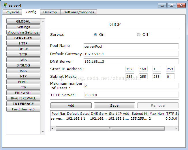 单击服务器Server0 ---》单击Config