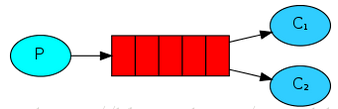 同一个消息被多个消费者获取。一个消费者队列可以有多个消费者实例,只有其中一个消费者实例会消费到消息。