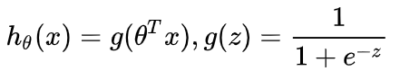 - 逻辑回归的假设函数形式: