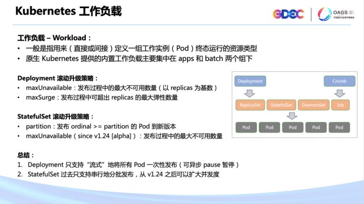 K8s 当中所有的 Pod 都是由工作负载来管理的,其中最常见的两个工作负载就是 Deployment 和 statefulset。Deployment 对于升级而言提供了 maxUnavailable 和 maxSurge 两个参数,但是本质上来讲 Deployment 它只支持流式的一次性发布,用户并不能控制分批。StatefulSet 虽然支持分批,但是跟我们想要的渐进式发布的能力还有比较大的距离。