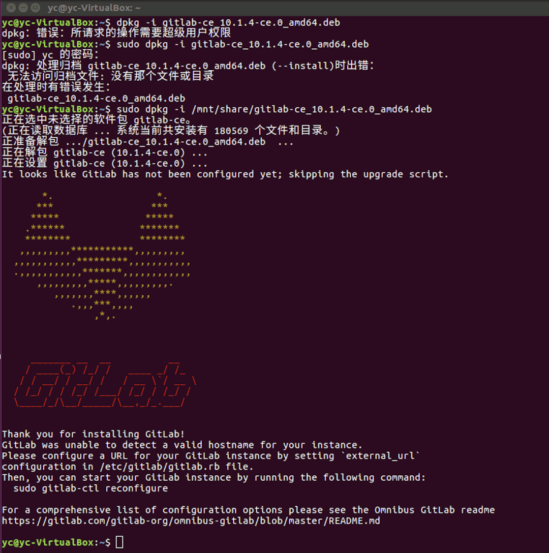 sudo dpkg -i /mnt/share/gitlab-ce_10.1.4-ce.0_amd64.deb