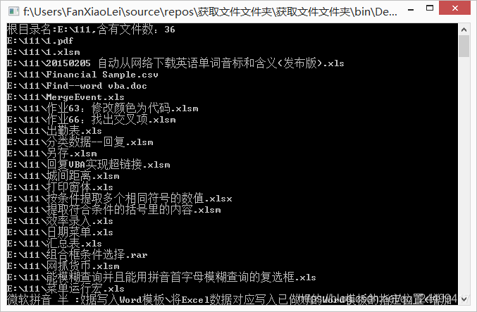 Console.WriteLine($"根目录名:{path},含有文件数:{fls.Length}");