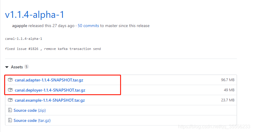 根据上面的解释,以及 canal 提供的版本信息,我们在使用 canal 的时候,首选要安装一个 canal.deployer-1.1.4.tar.gz 进行解析 MySQL 的 binlog 日志。