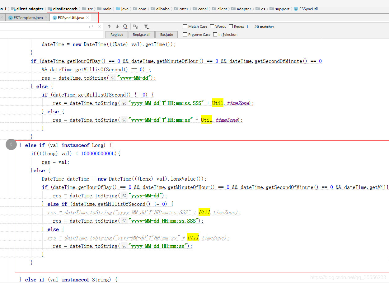 3、es中使用的date字段类型和数据库中不一致,所以这里又修改了部分源码兼容我们项目中的类型