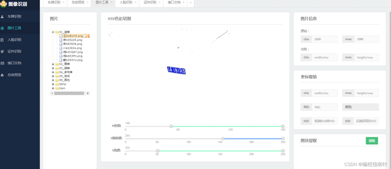- 图片处理工具,目前实现了HSV色彩切割,后续将添加更多使用的图片处理工具,用于辅助算法优化
