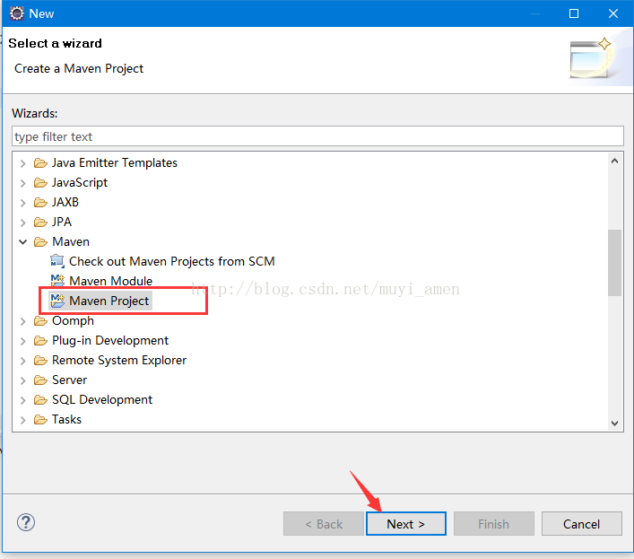 a、new project--other--maven,选择maven project,点击Next按钮。