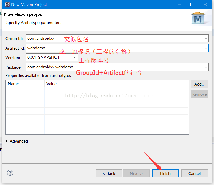 d、如图填写信息,然后点击finish按钮