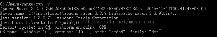 4、验证配置是否成功,打开cmd,输入:mvn -version 显示如下信息表示安装成功:
