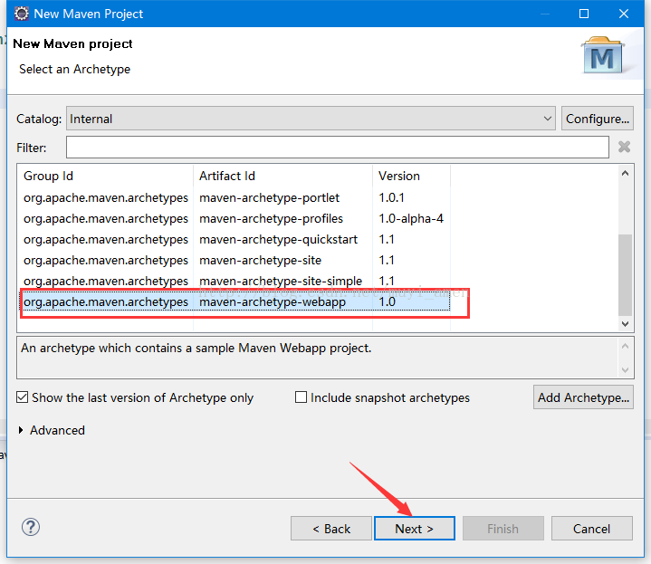 c、选择webapp,然后点击Next