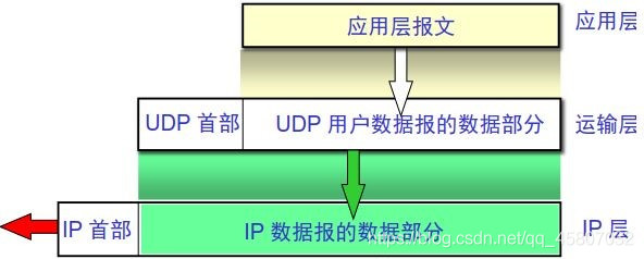 - 检验和: 检测udp用户数据报在传输中是否有错,若有错就丢弃。