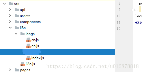 在main.js同级建i18n新文件夹,里面新建i18n.js、langs文件夹,langs文件夹下新建en.js、cn.js;目录如下: