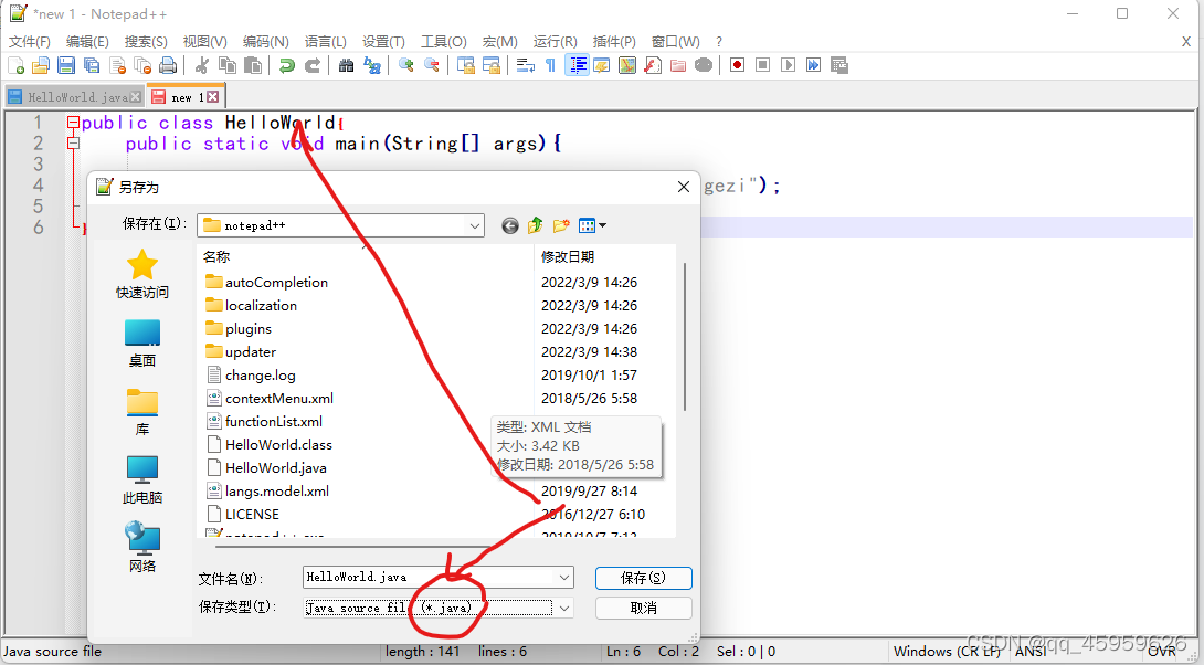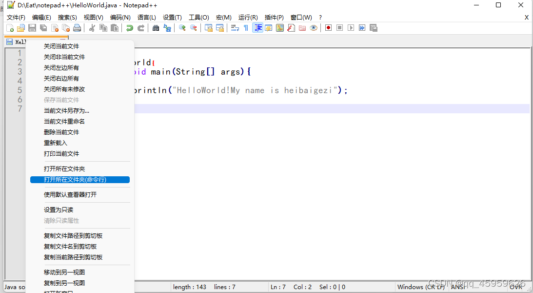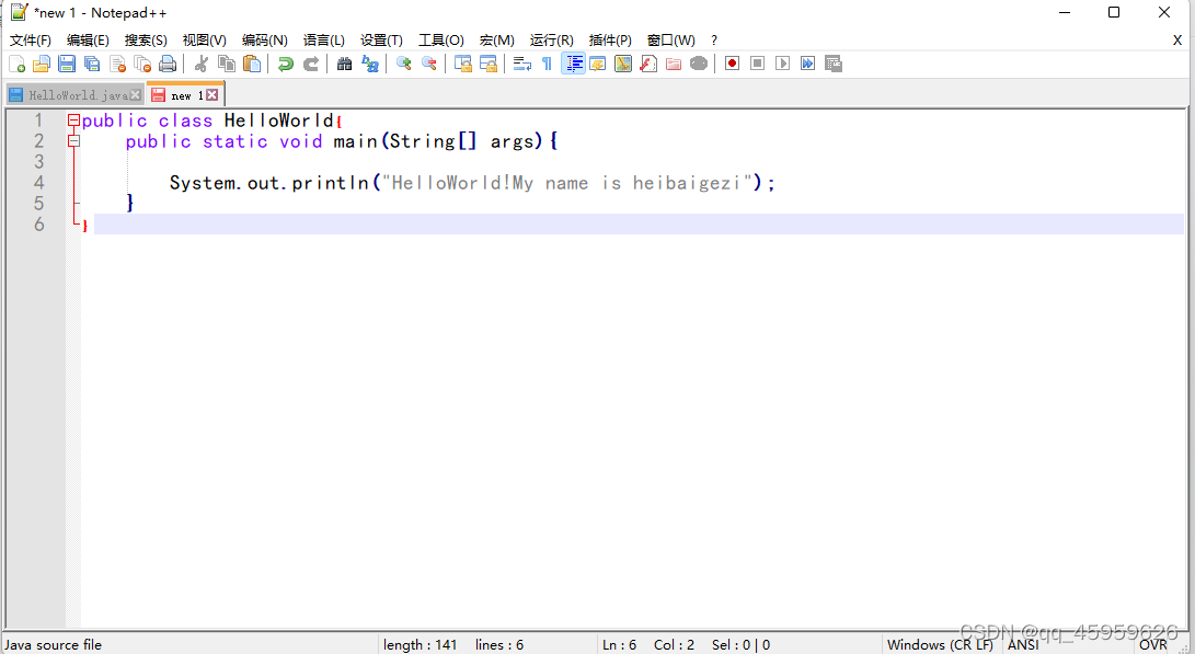 打开notepad++后进行写java代码