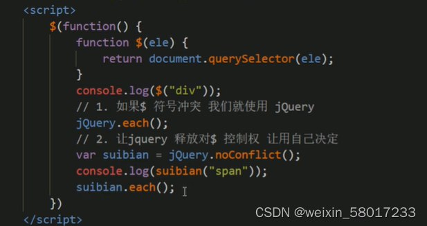 1.`把里面的$ 符号统一修改为 jQuery 比如 jQUery("div")`