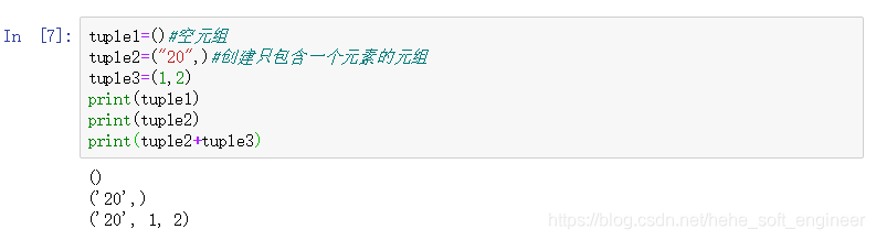 (1)特点:操作元组与列表类似,不同之处在于,元组内的元组不能修改,元组写在小括号()里,元组之间用逗号隔开,元组内的元组类型也可以不同。元组之间也可以通过+直接合并。