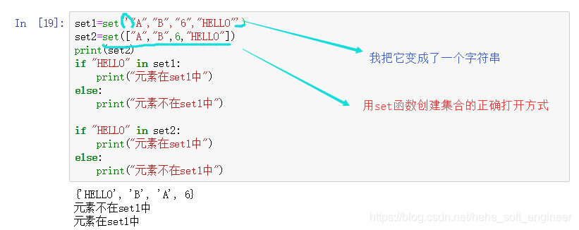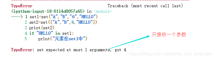 向set函数的参数里,传入含有多个元素的列表或元组均可;如果只传入一个字符串,他会将字符串拆成一个个的字符,那么创建的集合就全是一个个的字母的集合啦