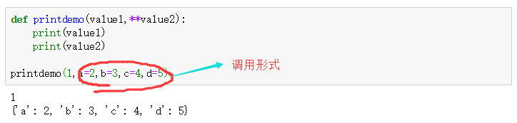 ②第二种形式:使用加**的参数,表示输入形式为字典形式,长度不定