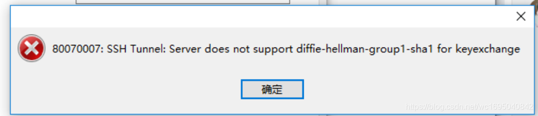 80070007:SSH Tunnel:Server does not support diffie-hellman-group1-sha1 for keyexchange截图如下: