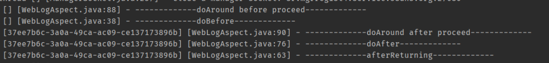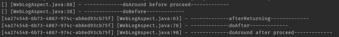 之前的项目中,运行正确的切面日志记录效果如下图: