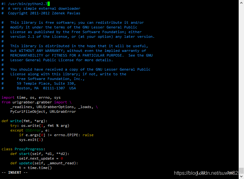修改文件最顶部一行,改成python2.7,修改后 按ESC,shift+: wq 保存退出