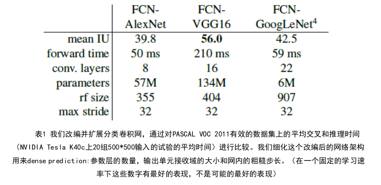 我们在第3节中以卷积证明分类架构的。我们认为拿下了ILSVRC12的AlexNet3架构 [22] 和VGG nets [34] 、GoogLeNet4 [35] 一样在ILSVRC14上表现的格外好。我们选择VGG 16层的网络5,发现它和19层的网络在这个任务(分类)上相当。对于GoogLeNet,我们仅仅使用的最后的损失层,通过丢弃了最后的平均池化层提高了表现能力。我们通过丢弃最后的分类切去每层网络头,然后将全连接层转化成卷积层。我们附加了一个1*1的、通道维数为21的卷积来预测每个PASCAL分类(包括背景)的得分在每个粗糙的输出位置,后面紧跟一个去卷积层用来双线性上采样粗糙输出到像素密集输出如3.3.节中描述。表1将初步验证结果和每层的基础特性比较。我们发现最好的结果在以一个固定的学习速率得到(最少175个epochs)。