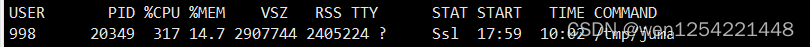 发现服务器内存占用100%,执行命令查看内存占用