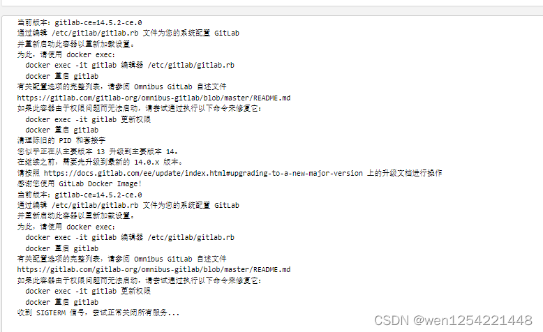 docker logs 容器id 如果没有错误日志,等待gitlab部署完成,在寻找13.0.*版本的gitlab进行升级 步骤如上,我就不重复累赘了