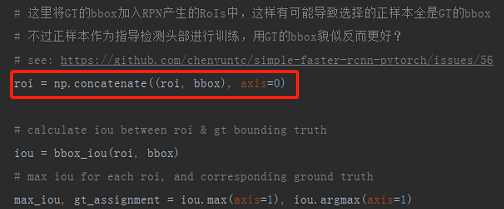 在实际的代码实现中,将GT也一并加入了RoIs样本中: