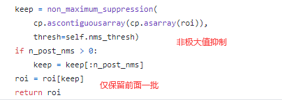这部分是One-Stage的最后阶段,也称作 Proposal Creator(Proposal Layer),会对RPN输出的分类和回归结果进行后处理(如NMS等),得到网络认为包含物体的区域,称为感兴趣的候选区域——RoI。