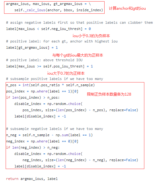 6). 仅将标签为0和1的样本用于训练,忽略标签为-1的anchor