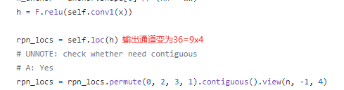 回归的做法是使用1x1卷积将通道数映射到36=9x4,对应9个anchor的位置与大小。注意,这里回归的4个量分别是矩形框中心点与anchor中心点横、纵坐标的位移 以及 矩形框长宽与 anchor 长宽的比例。