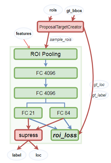 这部分是从Proposal Creator (RPN中的Proposal Layer)产生的RoIs中筛选出128个目标样本,其中正负样本比为1:3,用于指导检测器(RoIHead)的训练。