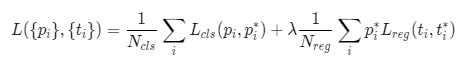 表示anchor位置的数量,即feature map中特征点的数量(约2400个),λ是平衡参数,相当于加权(大于一时给回归loss加权,小于1时给分类加权),论文中默认为10。