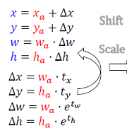本文一直强调,无论是在RPN还是RoIHead中,回归结果都不是bounding box的坐标,而是相对(正样本anchor、RoI)中心点坐标的位移和长宽比。为方便叙述,这里把两者分别称之为offset和scale。