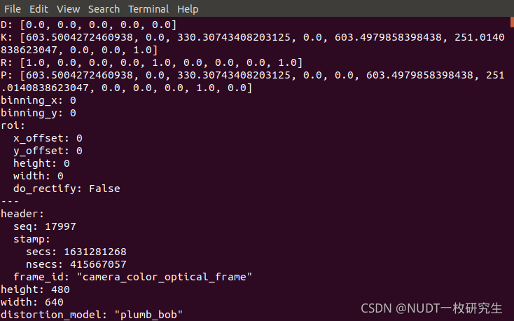 rostopic echo /camera/color/camera_info