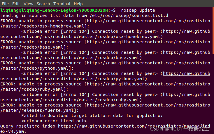 在安装标定工具包的时候遇到了ROS rosdep更新失败的问题: