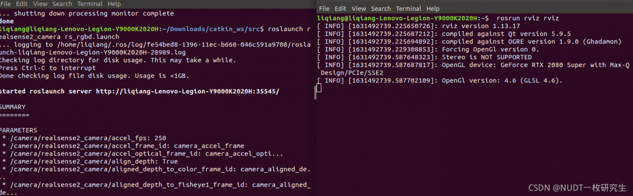 roslaunch realsense2_camera rs_rgbd.launch然后另外打开一个终端: