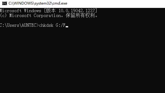 接着在里面输入chkdsk G:/F(此处的G指的是sd卡盘符名称,/F指的是修复参数),修复完成后再查看sd的属性,如果能够正常显示容量了,就说明修复成功,如果没有修复成功也别着急,用工具扫描了试试。