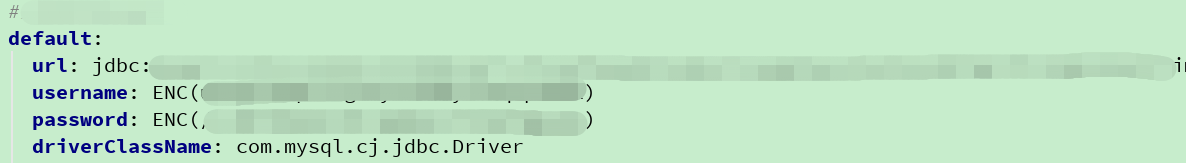 4、配置数据库中想要加密的变量,如username、password。需要把加密后的字符放在ENC()里。