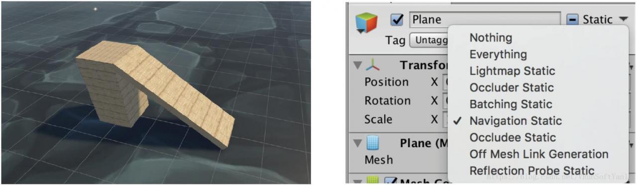 ++++自动寻路中贡献导航网格的对象设置为导航静态:Navigation Static