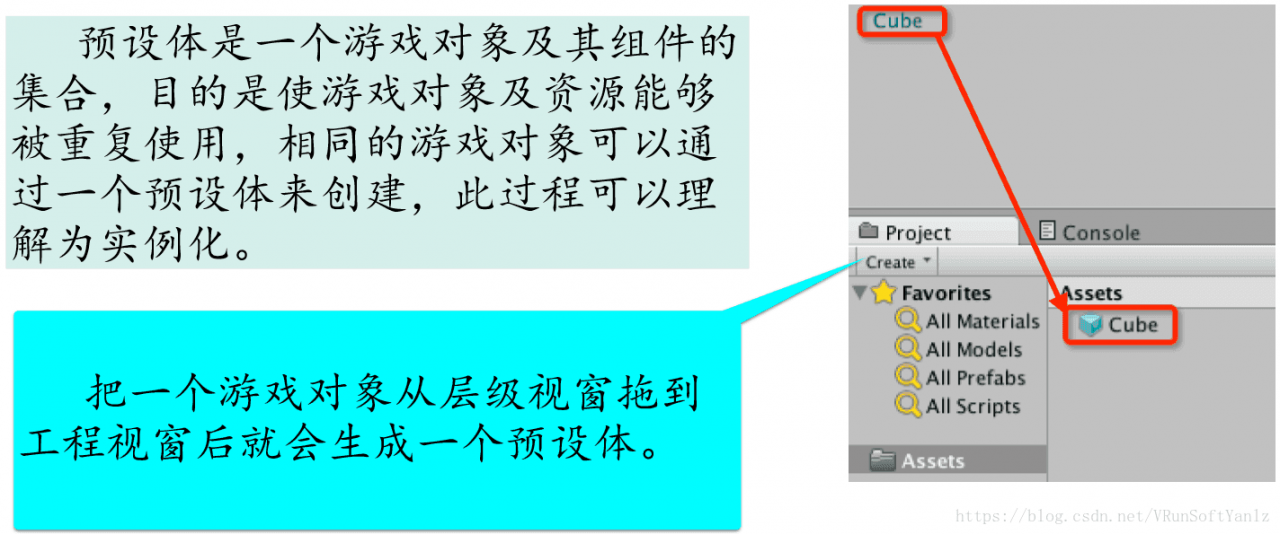 ++++立钻哥哥:Prefab预制体是一个游戏对象及其组件的集合,目的是使游戏对象及资源能够被重复使用,相同的游戏对象可以通过一个预制体来创建,此过程可以理解为实例化;