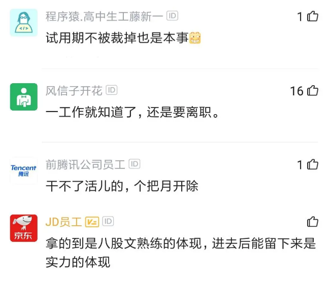就算过了背调,还要面临试用期的挑战,没本事的人一工作就会被发现,最终还是要被开除。进去只能说明八股文背得熟,进去后能留下来才是有实力。