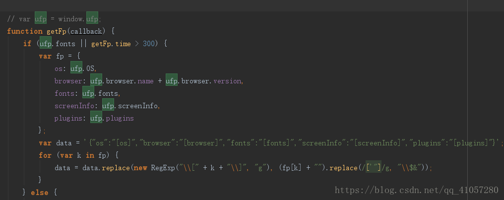 这是一个POST请求,传了两个值,一个是cp,定值为:gen_callback;另一个是fp,他是通过 getFp()方法生成,博主看了下,大致是获取浏览器类型,窗口大小,字体之类的常量。应该是为了判断是否为爬虫设置的。也就是说,只要不改浏览器配置,这些值不会变的。测试的时候,直接复制进去就可以了