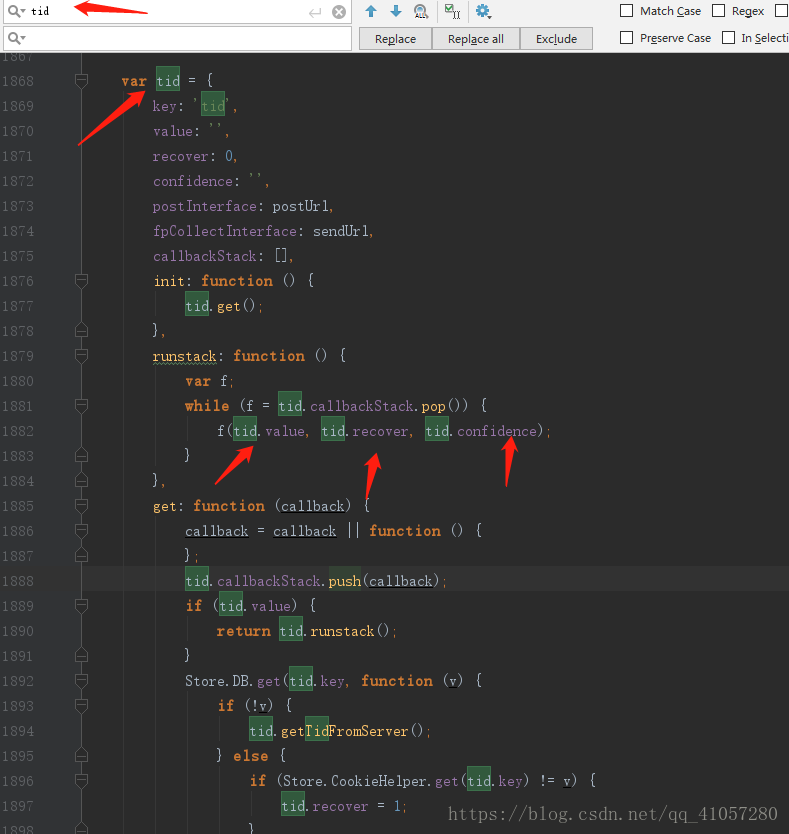这三个参数这里是没有,只能通过mini_original.js(第三个请求)去找。1984行的源码。上面有三个关键词,用tid一搜,就找到了。