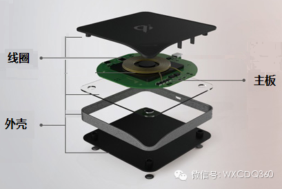 无线充电器主要由三个部分构成:外壳、主板和线圈。