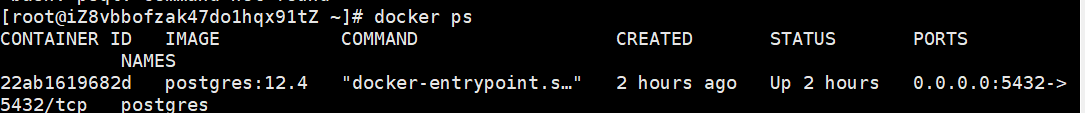 run:创建并运行一个容器; –name:指定创建的容器的名字; -e POSTGRES_PASSWORD=password,设置环境变量,指定数据库的登录口令为password; -p 54321:5432,端口映射将容器的5432端口映射到外部机器的5432端口; -d postgres:12.4,指定使用postgres:12.4作为镜像;