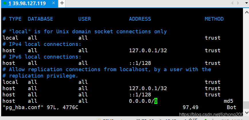 (1)、修改pg_hba.conf文件