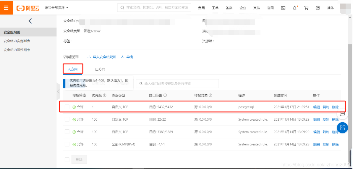 注意: 如果是阿里云服务器,需要在服务器后台开启安全组规则,才能进行远程访问: