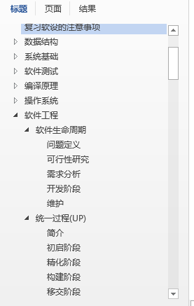 第四点,虽然我是计算机专业,但是我的office功底确实渣的一批,所以排版也是非常糟糕的,只会用标题一,标题二,标题三来区分知识点的从属关系。我以个人的理解,将众多的知识分成了多个章节,数据结构、软件工程、多媒体等。所以可能分的不太科学,只是根据自己的理解而已。但是没关系,考试不会考你某个知识点是属于哪个章节的,你会做就可以。这本笔记的最佳使用方法是打开word的导航窗体,根据章节去看。