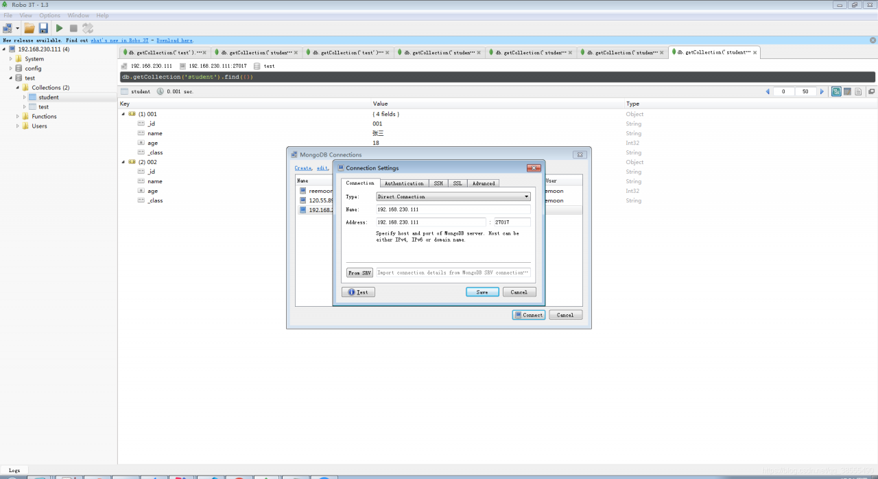 uri: mongodb://192.168.230.111:27017/test4、新建一个测试类